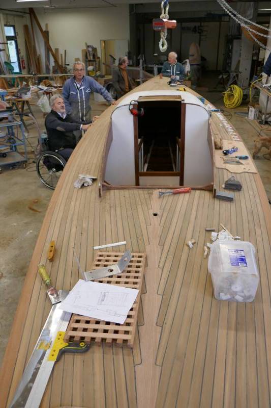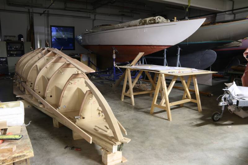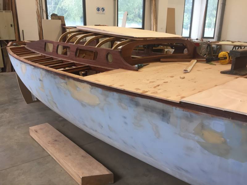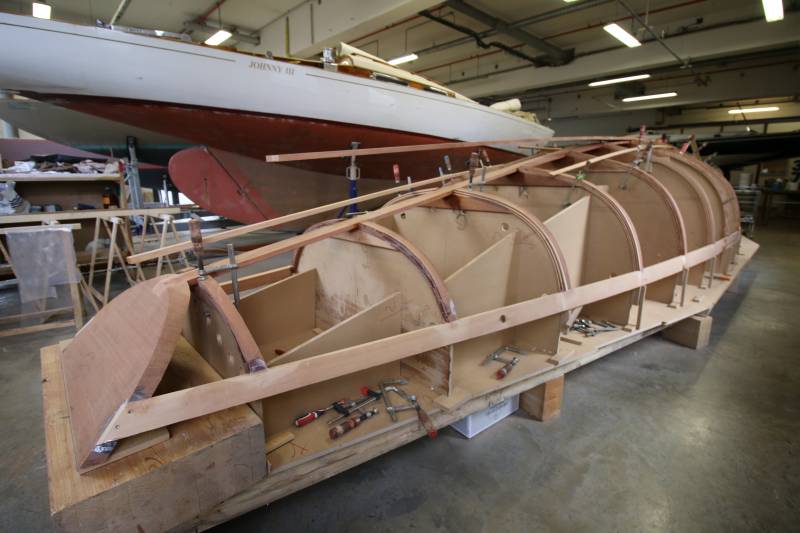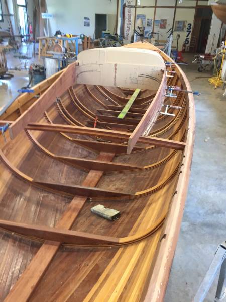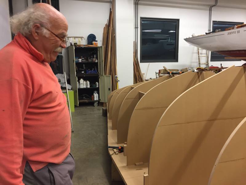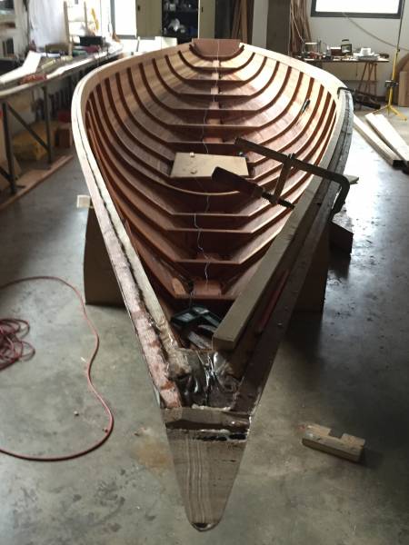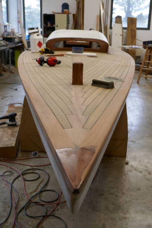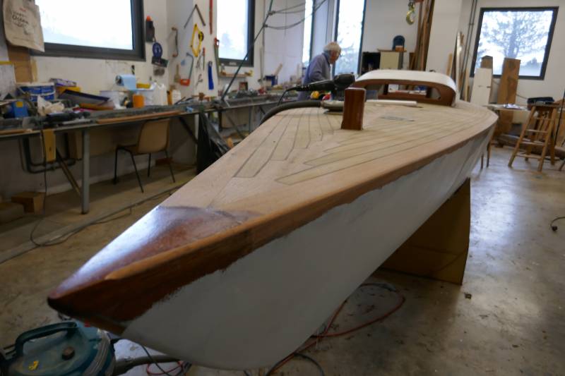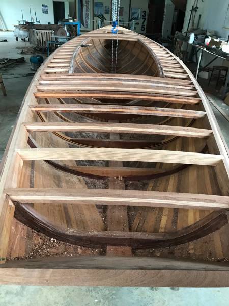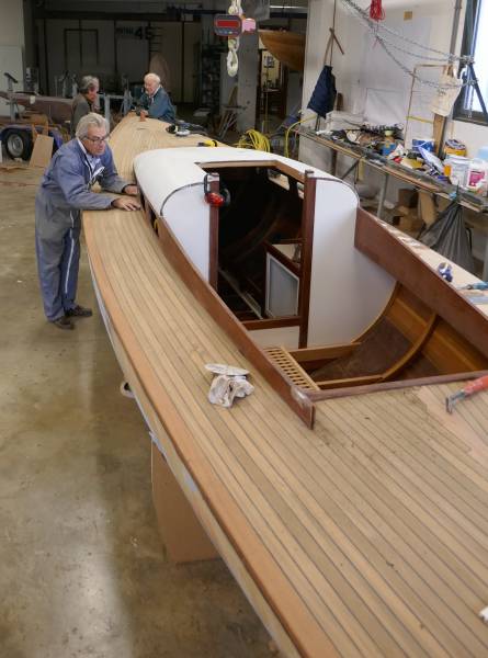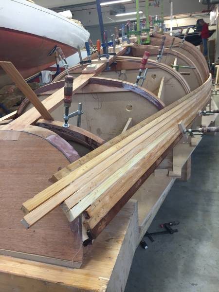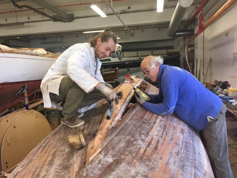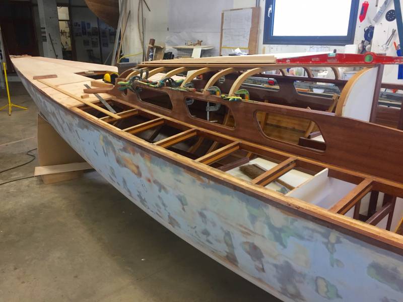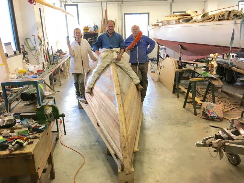 Après tant d’années à retaper des requins et toutes autres embarcations, Roger Quenet s’est lancé dans le grand projet de construction d’un nouveau requin en strip planking. Si chaque pièce de bois sera découpée, taillée, poncée pour donner forme à cette nouvelle unité; la quille, le safran, sa mèche et son tube de chaumière proviennent quant à eux d’un requin en décrépitude qui porte encore le nom d’Hirondelle.