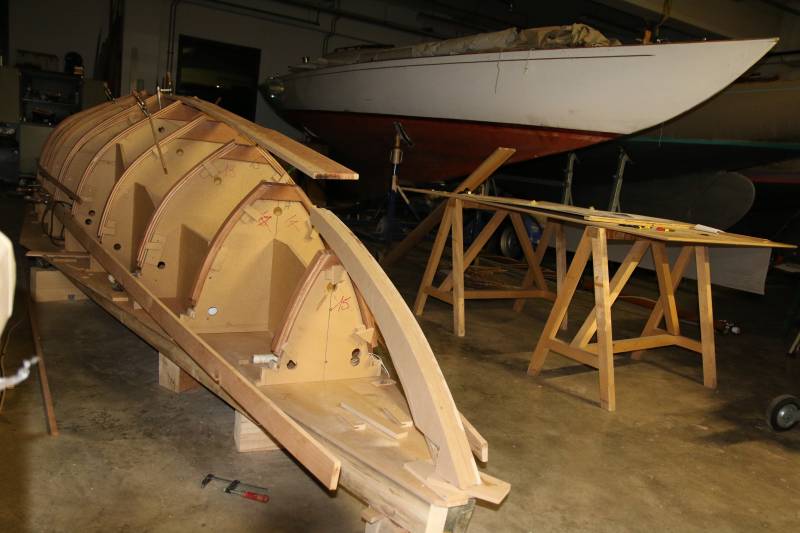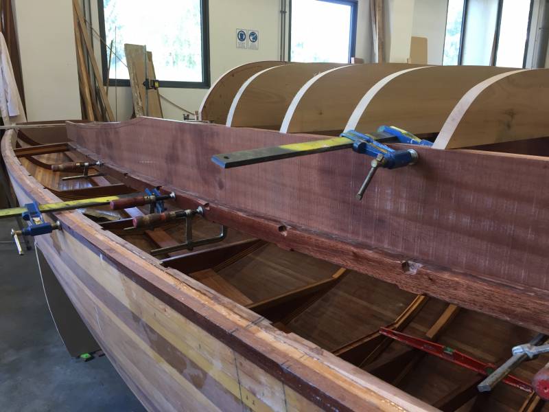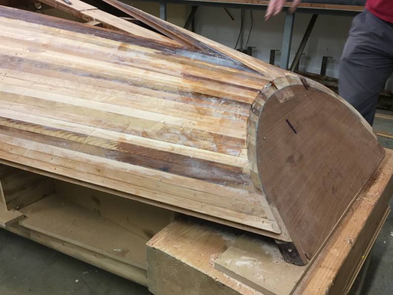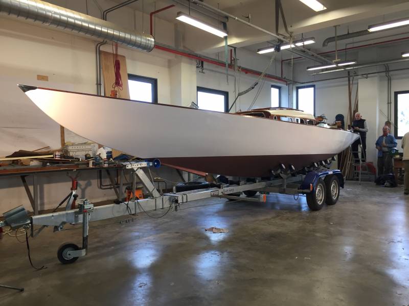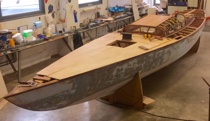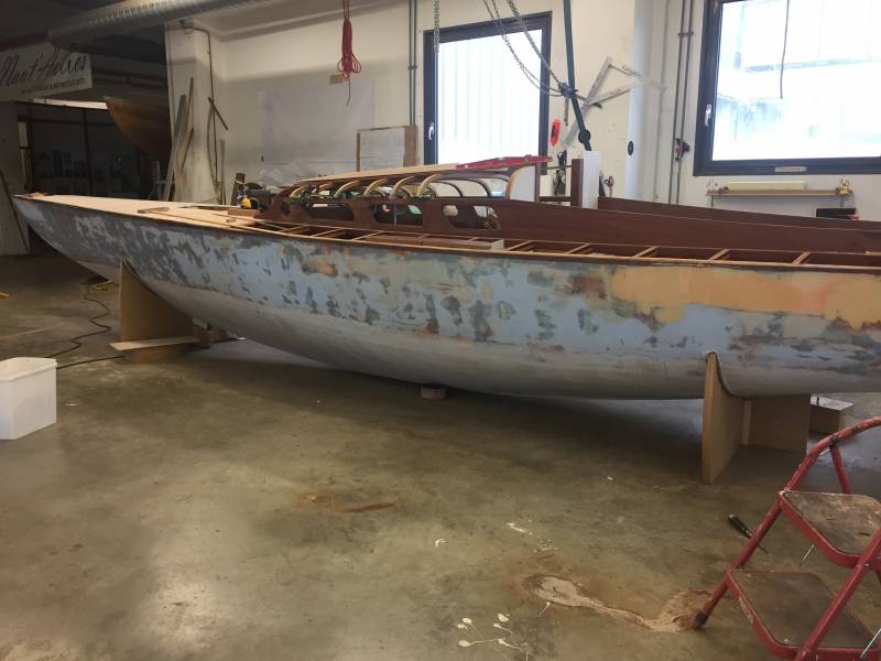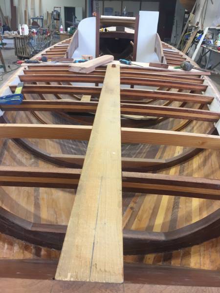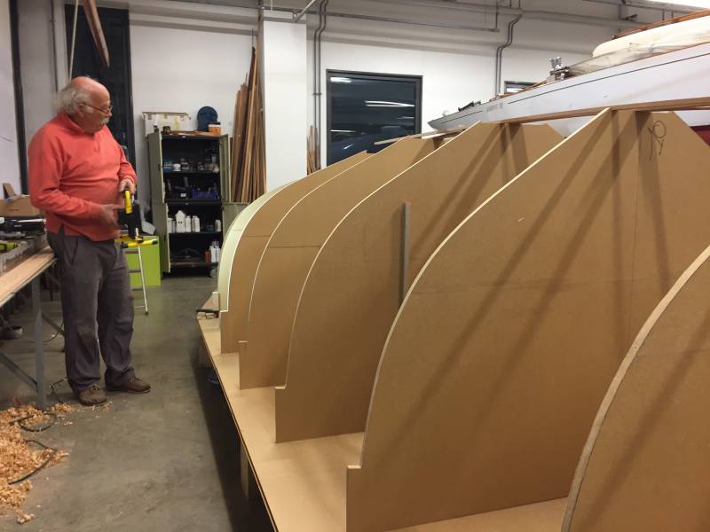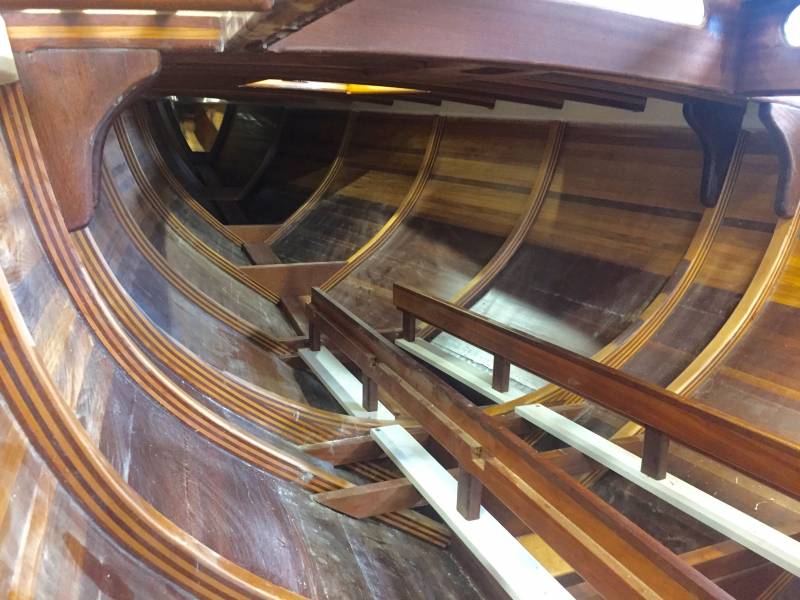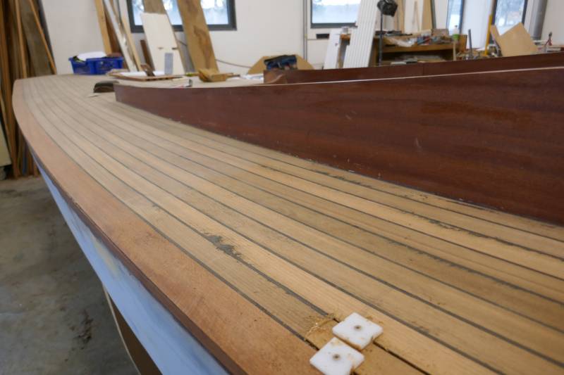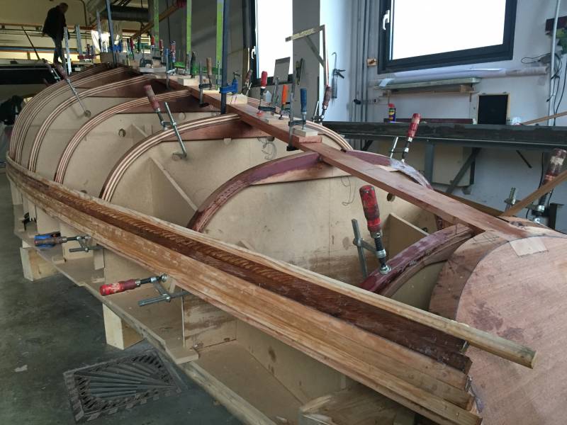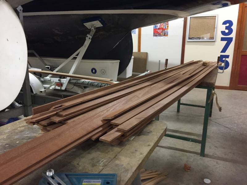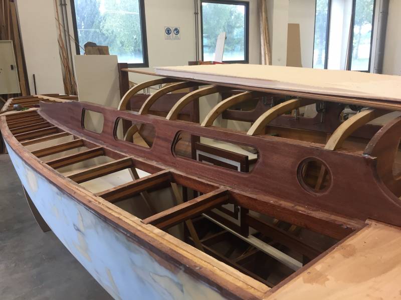 Après tant d’années à retaper des requins et toutes autres embarcations, Roger Quenet s’est lancé dans le grand projet de construction d’un nouveau requin en strip planking. Si chaque pièce de bois sera découpée, taillée, poncée pour donner forme à cette nouvelle unité; la quille, le safran, sa mèche et son tube de chaumière proviennent quant à eux d’un requin en décrépitude qui porte encore le nom d’Hirondelle.
