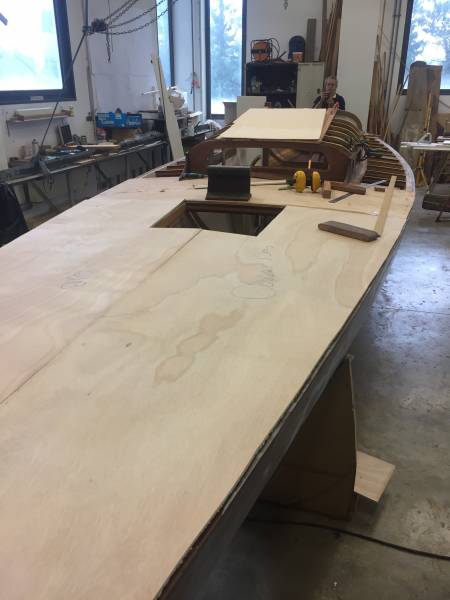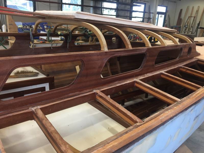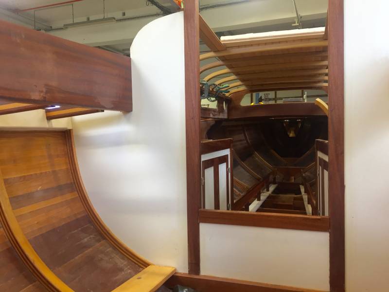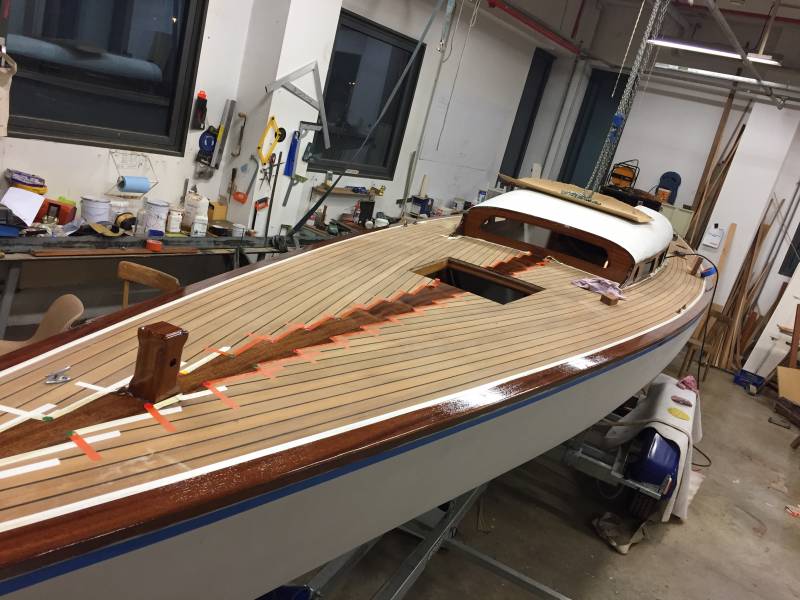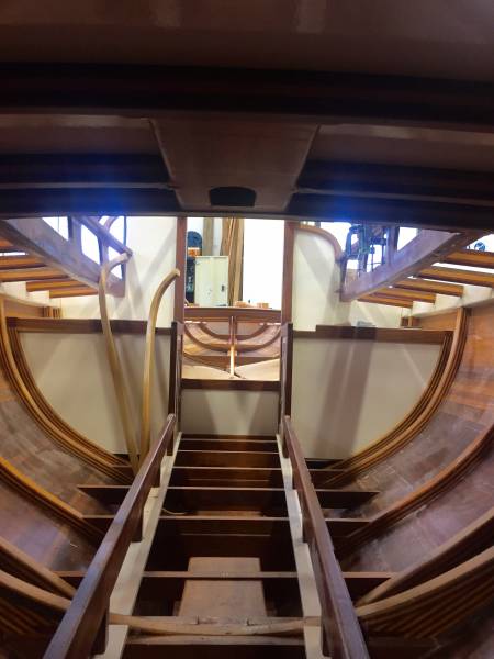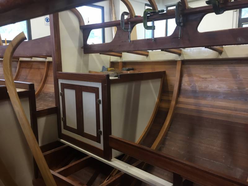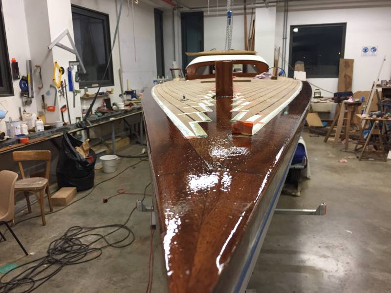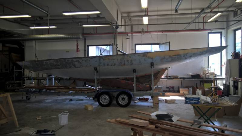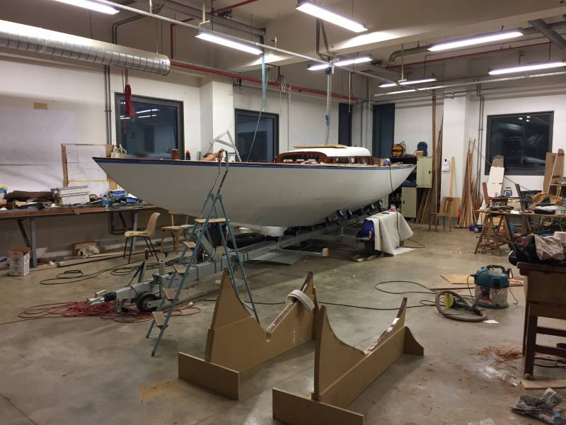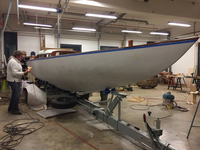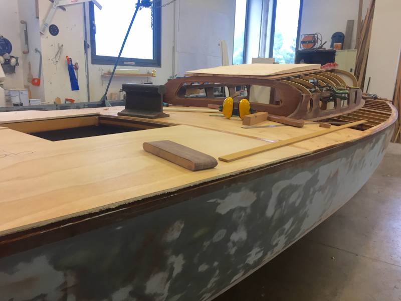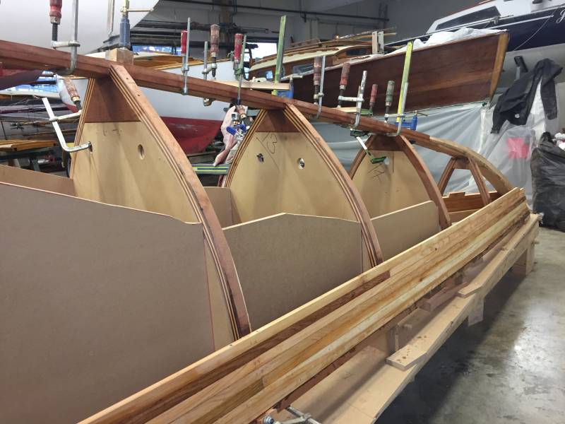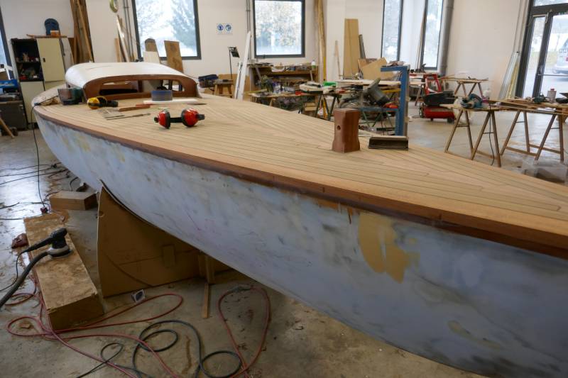 Après tant d’années à retaper des requins et toutes autres embarcations, Roger Quenet s’est lancé dans le grand projet de construction d’un nouveau requin en strip planking. Si chaque pièce de bois sera découpée, taillée, poncée pour donner forme à cette nouvelle unité; la quille, le safran, sa mèche et son tube de chaumière proviennent quant à eux d’un requin en décrépitude qui porte encore le nom d’Hirondelle.