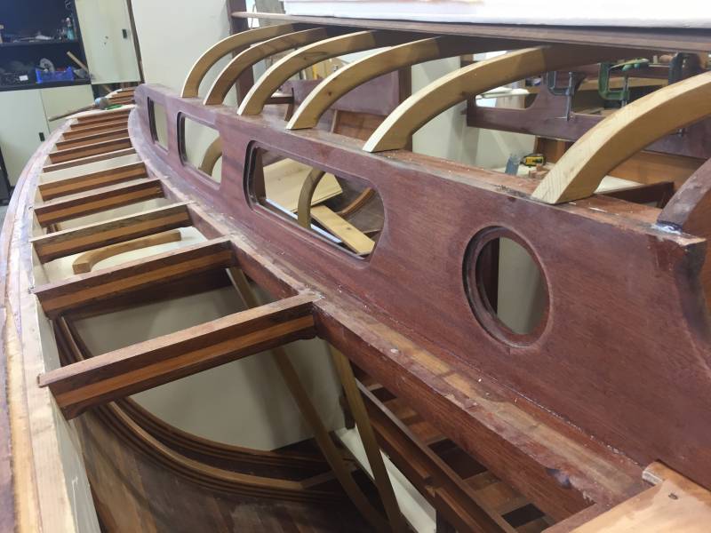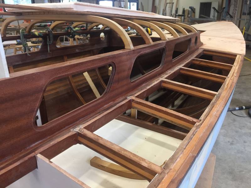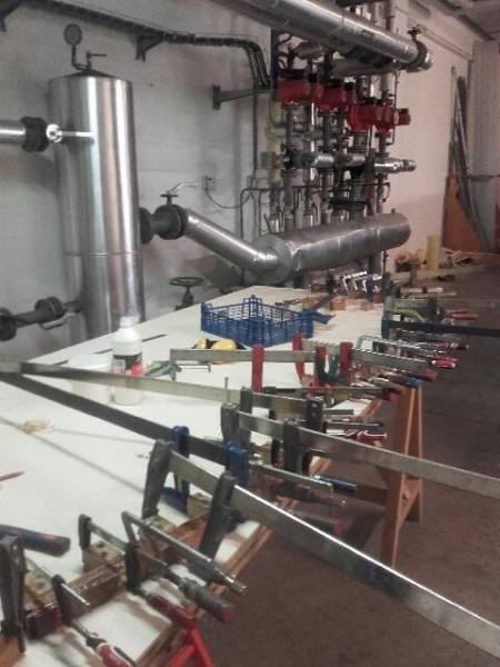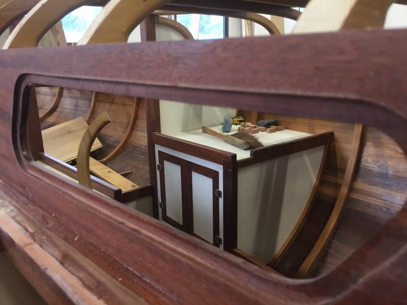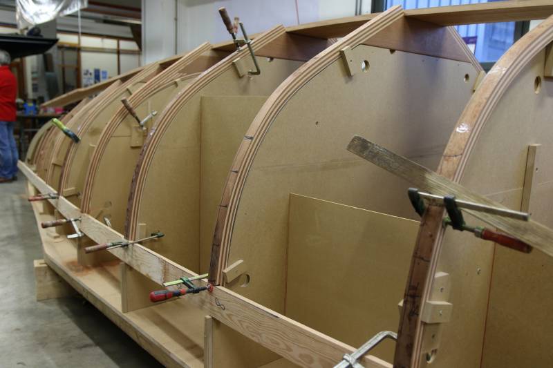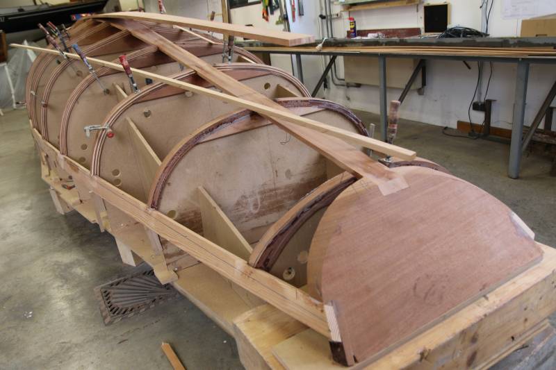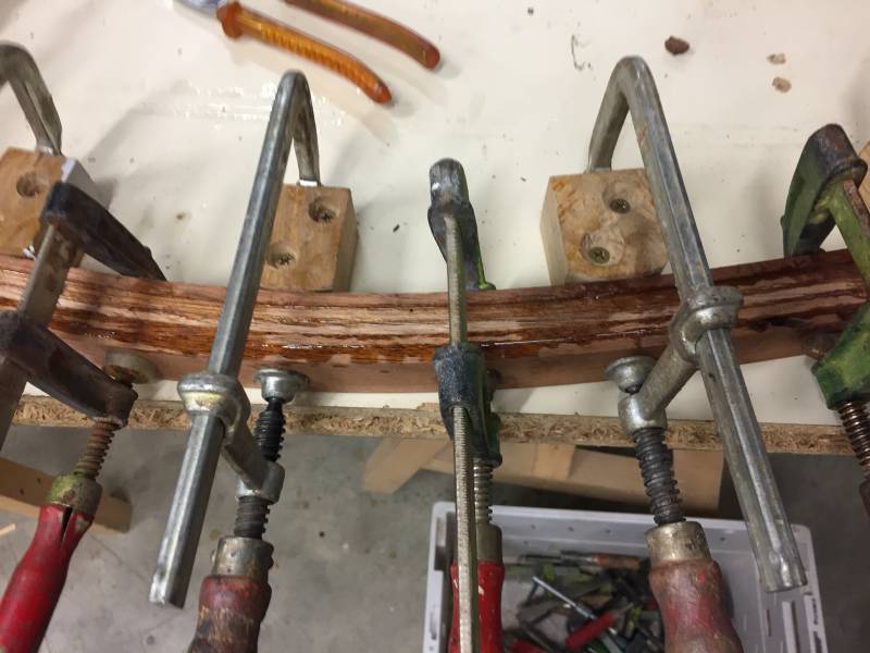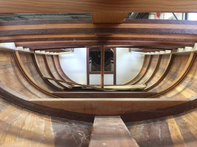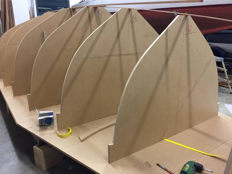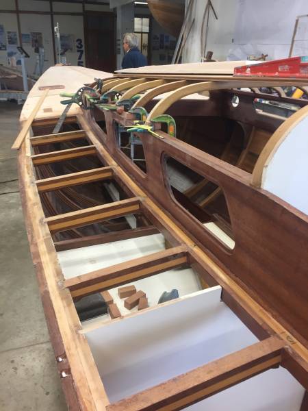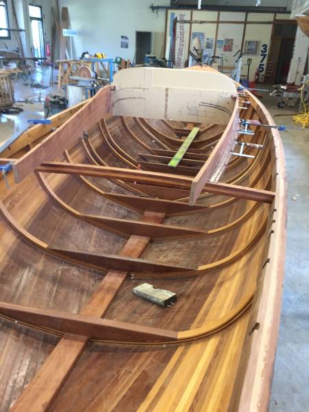 Membrures, bauquières, étrave, fausse-quille, étambot et tableau arrière sont collés! A quelques nombreuses heures de travail près le plus difficile est fait…