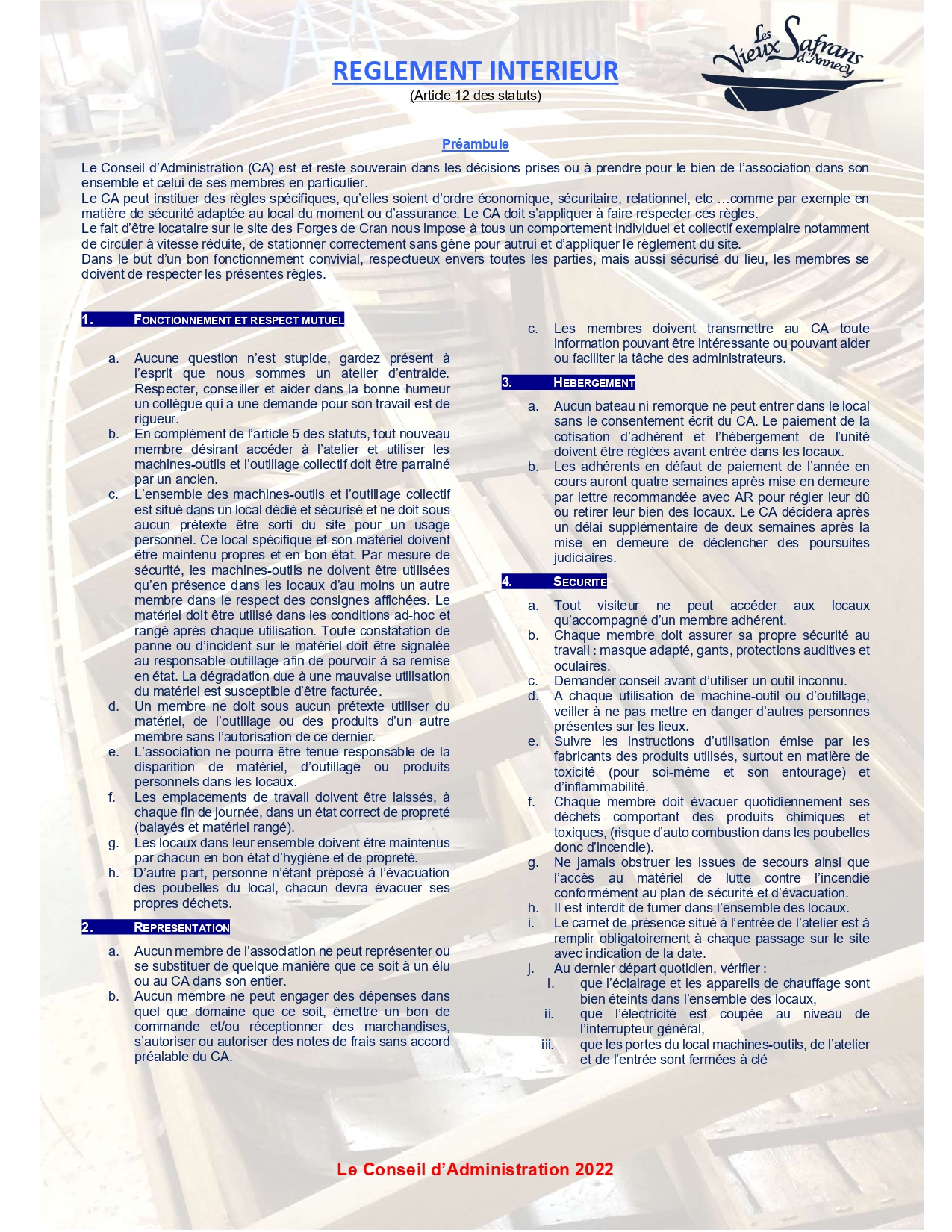 Règlement intérieur VIE DE L’ASSOCIATION Notre règlement intérieur. Découvrir Statuts et règlement Statuts des Vieux Safrans Association loi 1901 N° 4990 Règlement intérieur Règlement intérieur VSA (Article 12 des Statuts)